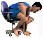 بایستید و پاها را به اندازه عرض شانه باز کنید سپس خم شوید به جلو و سعی کنید کف دست خود را به زمین برسانید. همین کار را بصورت نشسته به روی صندلی هم می توانید انجام دهید مانند شکل زیر: