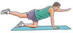 وقتی روی زانو و دست ها قرار دارید در حالی که کمر خود را صاف نگه داشته اید یک دست و پای مخالف آن را بلند کنید و بکشید و 5 ثانیه نگه دارید سپس با دو اندام دیگر اینکار را انجام دهید. حدود 10 بار در روز اینکار را انجام دهید: